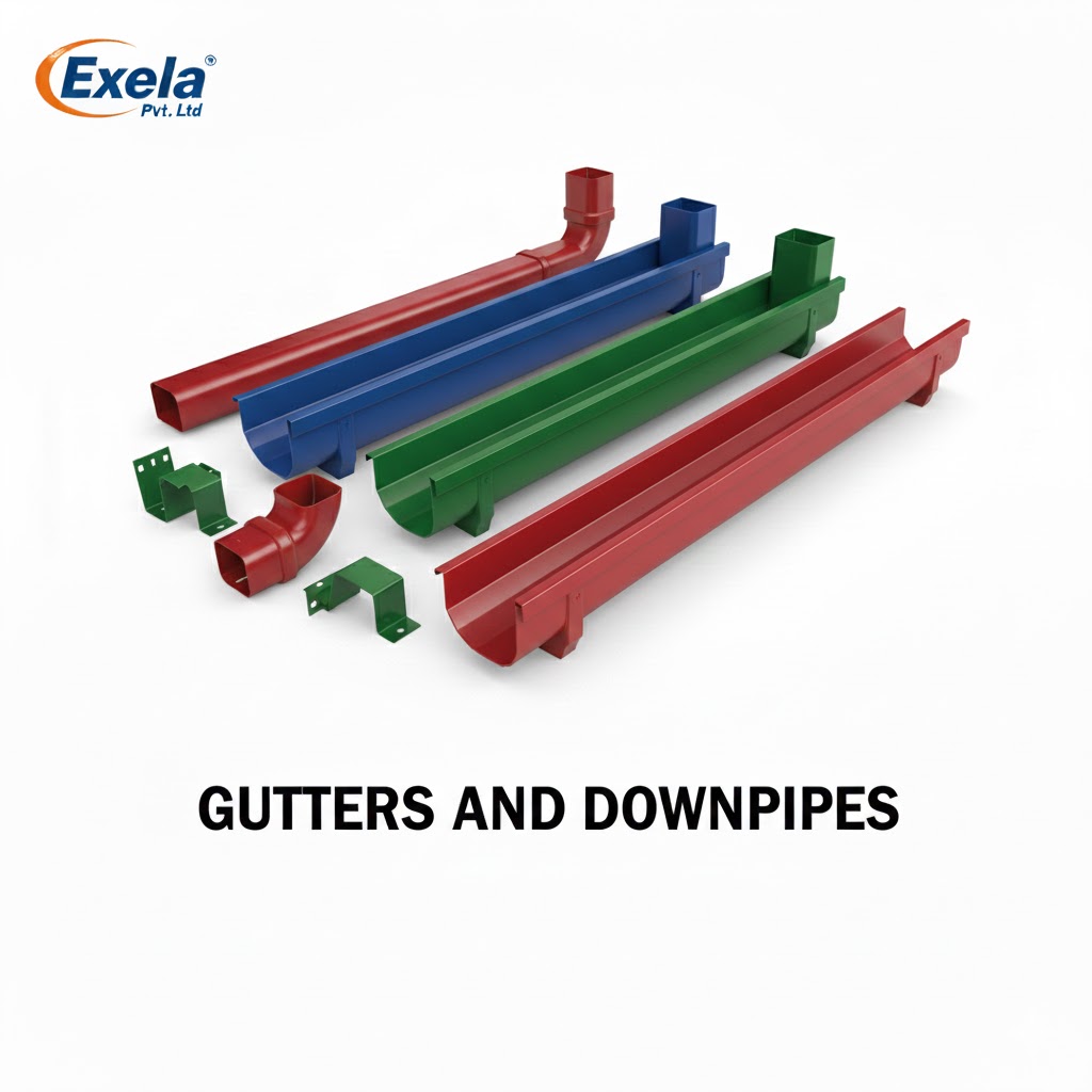 Exela Gutters & Downpipes are designed to deliver efficient, durable, and visually consistent rainwater management solutions for industrial, commercial, and residential buildings. Manufactured using high-quality PPGL and color-coated steel, our systems offer excellent resistance to corrosion, heavy rainfall, and harsh weather conditions.